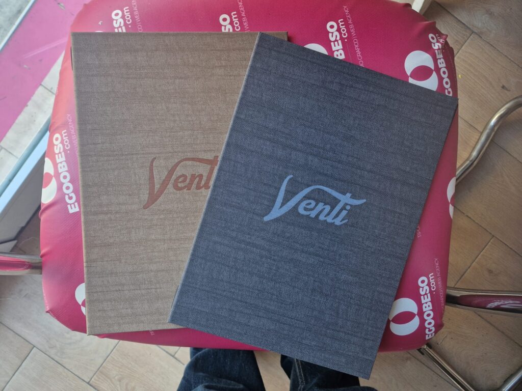 L’equilibrio perfetto tra eleganza e praticità con il menù con calamite interne. Grazie ai magneti invisibili, i fogli vengono mantenuti saldi senza l’uso di inserti in plastica, garantendo una presentazione pulita e raffinata. Ideale per locali che aggiornano frequentemente i loro contenuti, il menù è progettato per contenere fino a 6 fogli (12 facciate) e si adatta con stile alle esigenze di qualsiasi attività.
